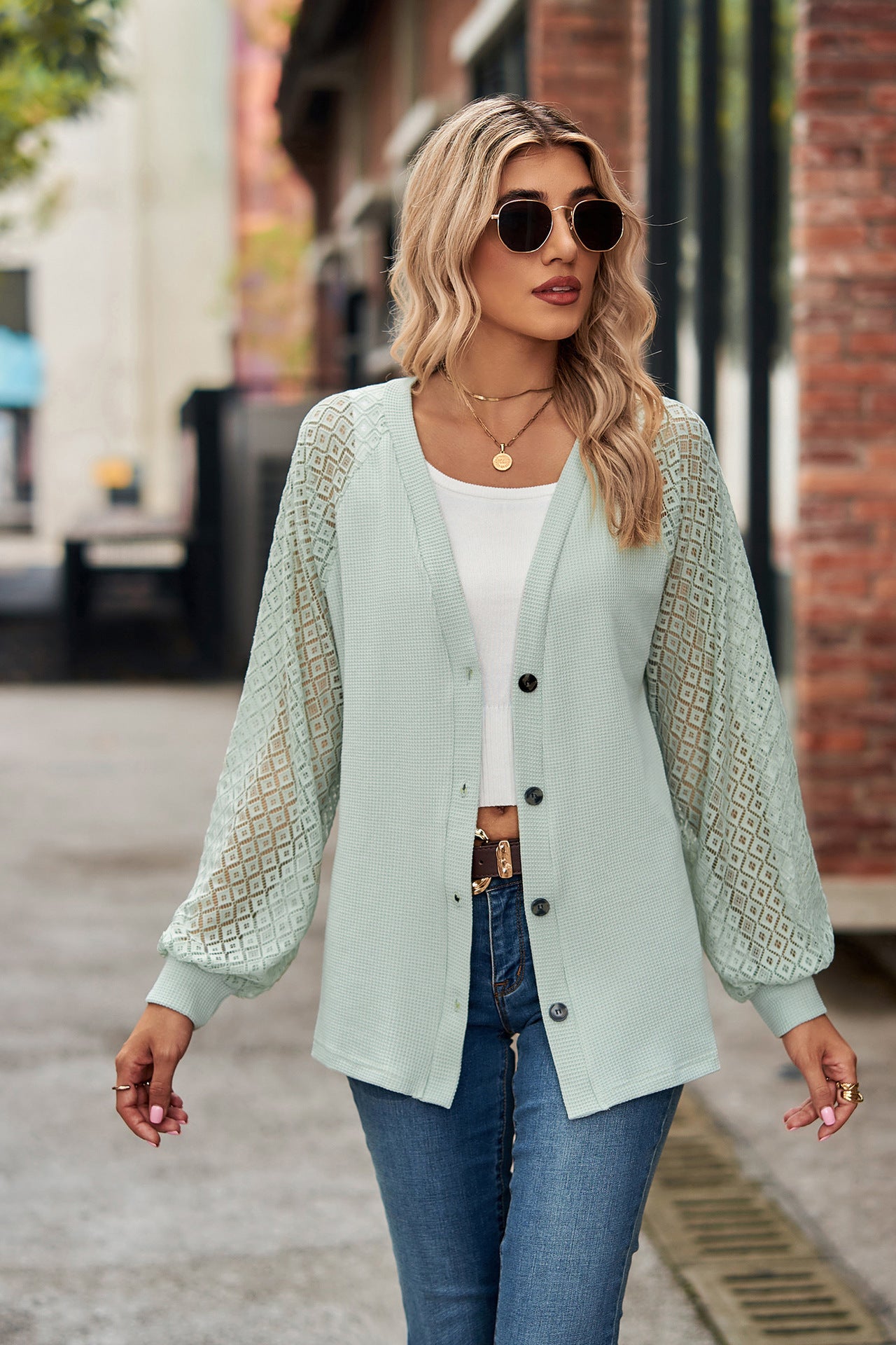 Full Size Ruffled V-Neck Button Down Flounce Sleeve Blouse