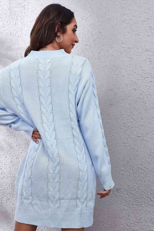 Decorative Button Round Neck Short Sleeve Sweater Dress