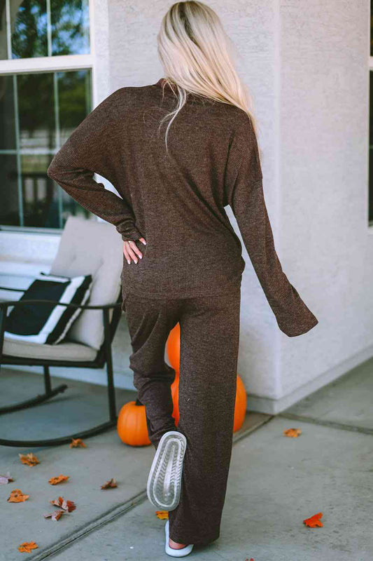 Buttoned Long Sleeve Top and Long Pants Lounge Set