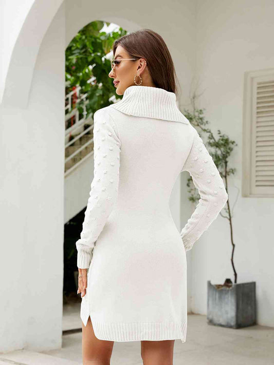 Turtle Neck Long Sleeve Ribbed Sweater Dress